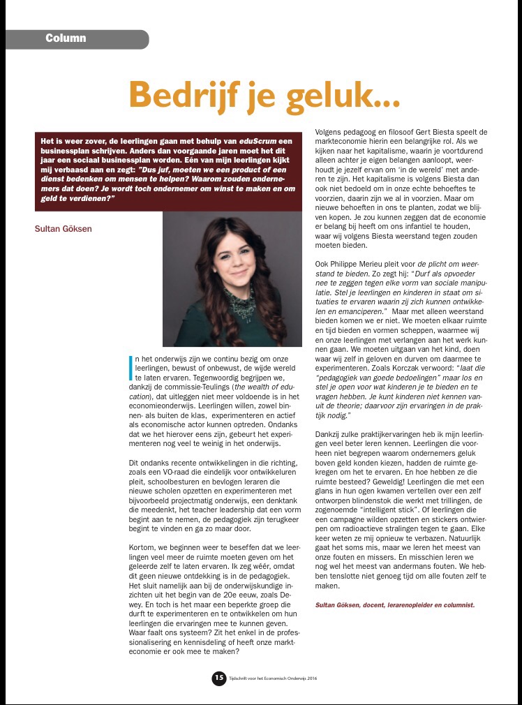Mijn nieuwe column in de TEO (Tijdschrift voor het Economie Onderwijs) nr. 1 2020 over Educatieve Escape Rooms. #educatieveescaperooms #hva #entrepreneurship #usasbe2020 #carem #escaperoom #educationdesign #jufgoksen
